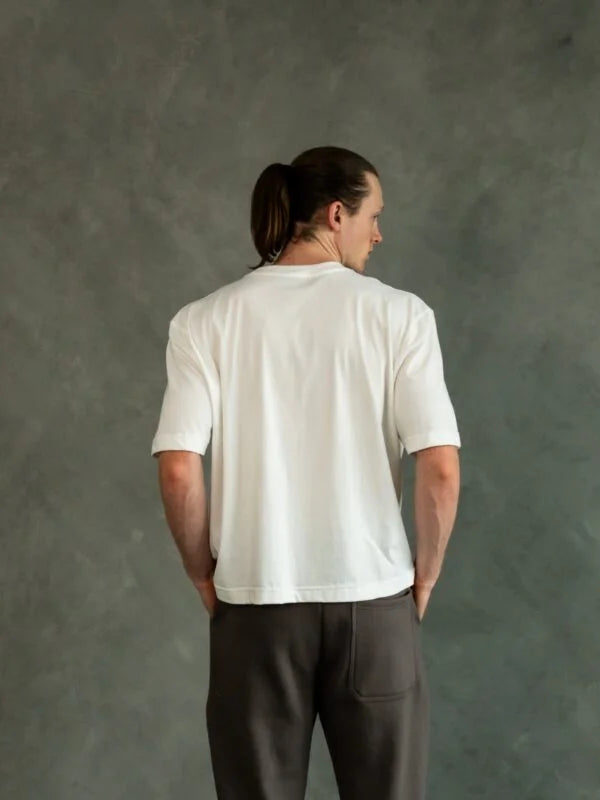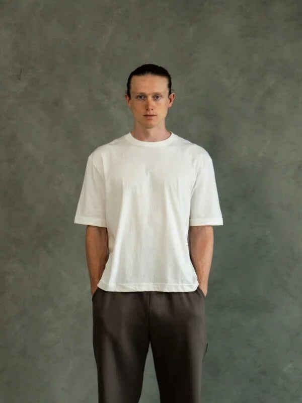 Corte cuadrado y hombros caídos para una silueta moderna y relajada.